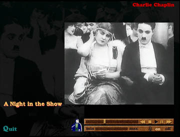 Merlin Media created several CD-based projects with and for Seiwa Systems, a US-based wing of Seiwa International in Japan, distributors of computer software. Among the projects were a CD-ROM of royalty-free graphic objects (buttons, banners, backgrounds) and simple, example templates to assist individuals in building small web sites, and the processing of several Charlie Chaplin videos for use on an interactive CD-ROM. We also (unshown) worked with Seiwa to create a screen saver product based on the anime series "Space Battleship Yamato," a cult classic from the 1960's. For that project we received a set of clipped film pieces from one of the original prints of the series. These were in such bad condition dull colors, scratches, etc. that each one required more than 3 hours of painstaking work to make usable. The results were beautiful and the product was a best seller in Japan.